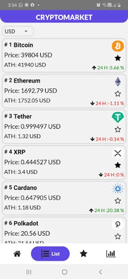 In this application you can follow the price of all cryptocurrencies, there is also a news and trends section, you can bookmark a currency and you can convert any crypto with 4 currency pairs USD, EUR, JYP, GBP