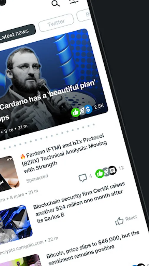 What is the crypto industry talking about? What coins are profitable, what events have affected the market today? It is quite a challenge to keep track of everything – a huge volume of messages appear on various sources every day. Crypto News offers a convenient solution –read all the news in a single application! We collect content from the most popular sources: Cointelegraph, Coindesk, Twitter, etc.