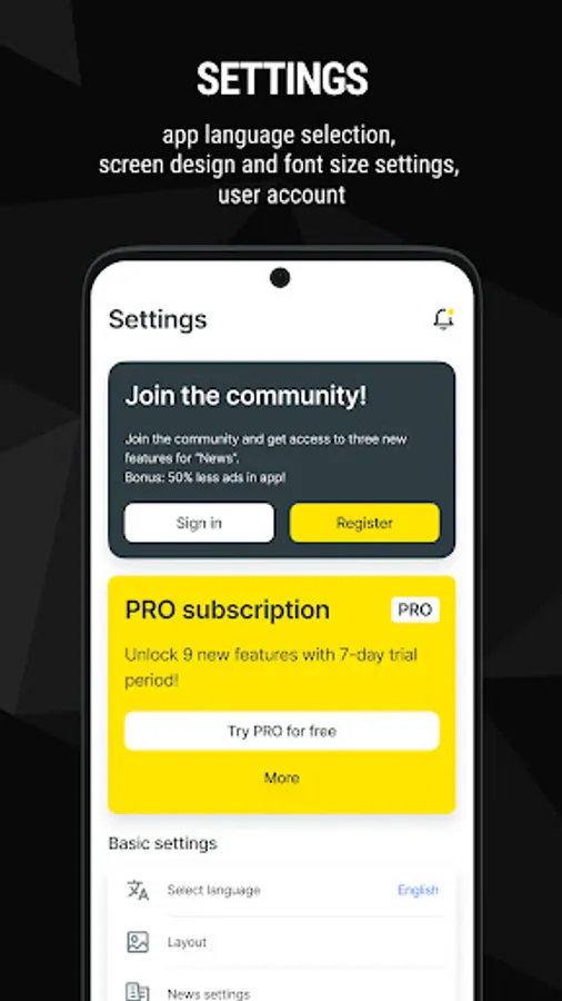More than 300 news websites – that’s the list of sources which is constantly being updated. You won't miss anything important! News are available in English, Russian, German, Spanish and Arabic.