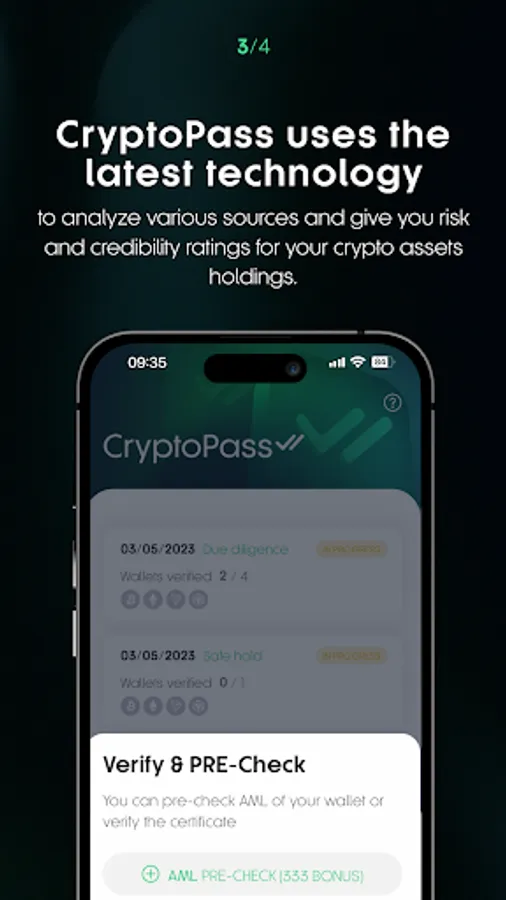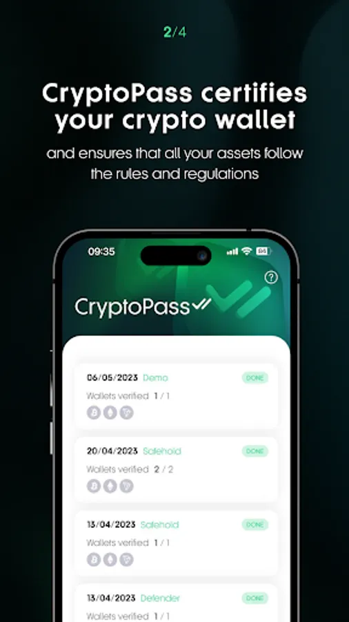 CryptoPass is an app that uses advanced technology to provide wallet certification for crypto assets. With CryptoPass you can easily confirm the ownership of your assets and prove that your funds are legitimate.