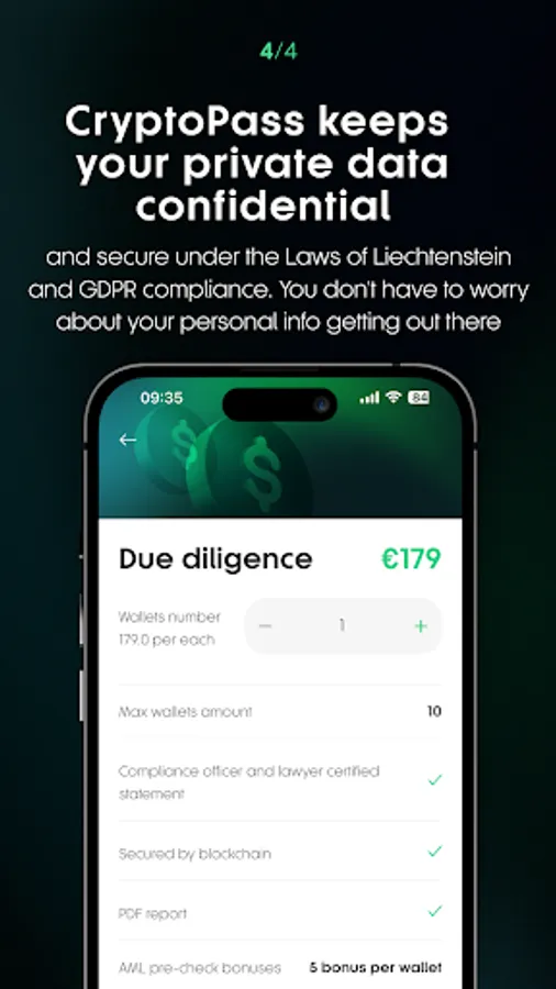 Confidentiality: CryptoPass ensures high levels of discreet personal data under the Laws of Liechtenstein and GDPR compliance. Your private data is kept confidential and secure.