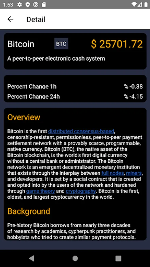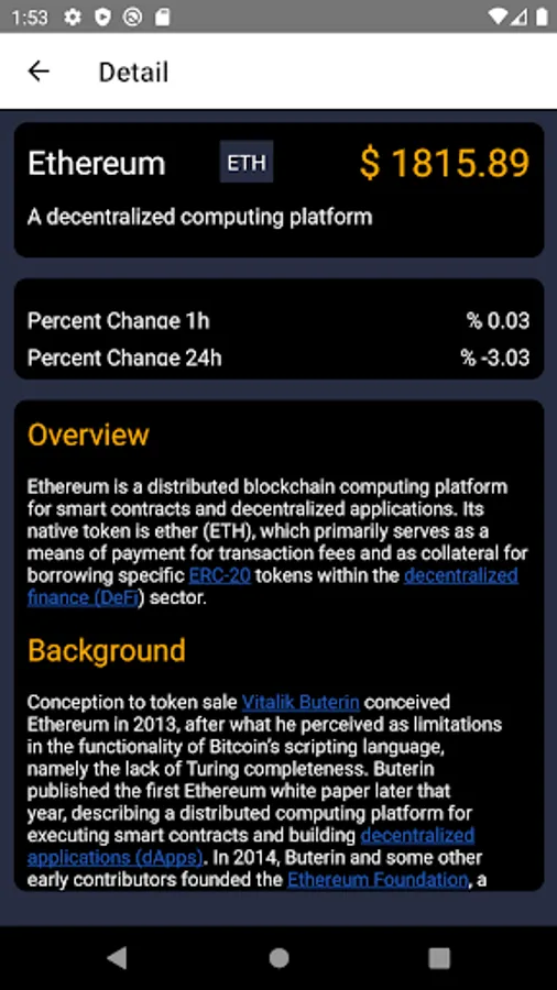 This app provides you the live prices of crypto such as Bitcoin, Ethereum, Solana etc with full detail of any specific crypto currencies.