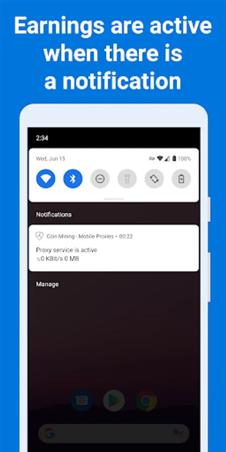 The profit is generated in the application for every access to the proxy network. Tokens are credited to the account. The payment is generated when other users apply the device owner’s IP.