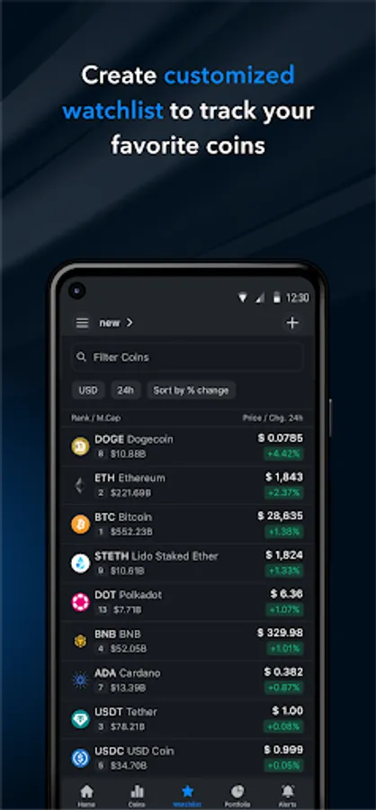 Stay up-to-date on your favorite cryptos by adding them to your watchlists. You can add any of our listed coins to create personalized watchlists and use filters to view the information you care about first. Watchlists can even be shared with anyone, compare your watchlists with other traders now!