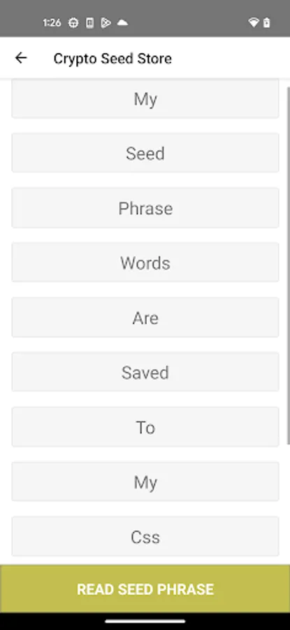 Safe and securely store your crypto wallet seed phrases, using your device's NFC to the Cryptoseedstor storage coins. View and update the seed phrases at any time the same convenient NFC way. All seed phrases are encrypted when saved to the coin and the coins are locked to the device the coin was added on. No seed words or seed or personal related information is saved on the device and the encrypted data on the coins is unreadable by any other NFC app or Cryptoseedstor device. Cryptoseedstor app supports up to 24 word phrases and up to three separate coins per device. Coming soon Cryptoseedstor Pro which supports unlimited coins as well as other convenient features.