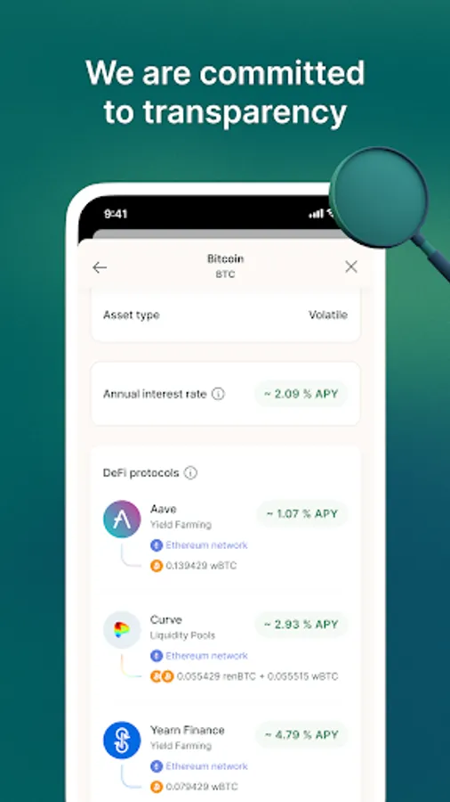 As part of our portfolios, we select volatile and stable assets based on extensive due-diligence. We don't invest in anything that seems too good to be true. Whether you are a conservative or aggressive investor, our portfolios will suit your needs. Our conservative portfolio, for example, consists of 90% stable coins, while offering 2% to 5% returns and have minimal exposure to volatile coins. We’ve built solutions across DeFi's (Decentralised Finance) ecosystem, which allows our users to earn interest in the same way traditional investing does, but with DeFi, your interest is compounded and you earn round the clock.
