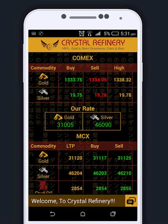 Crystal Refinery, one of the most reputed merchants in Gujarat, brings you the fastest, most accurate and reliable Rates for Gold & Silver along with full MCX market view at real time.