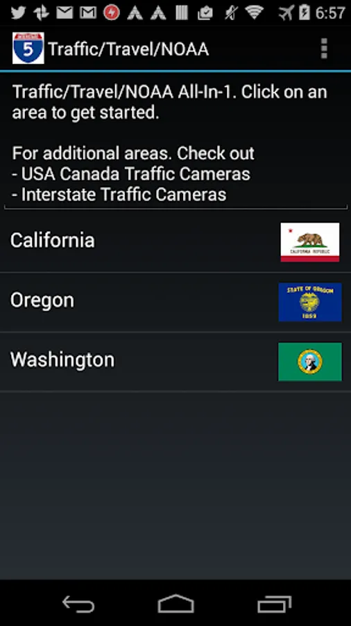 This app includes the traffic cameras for the following states: