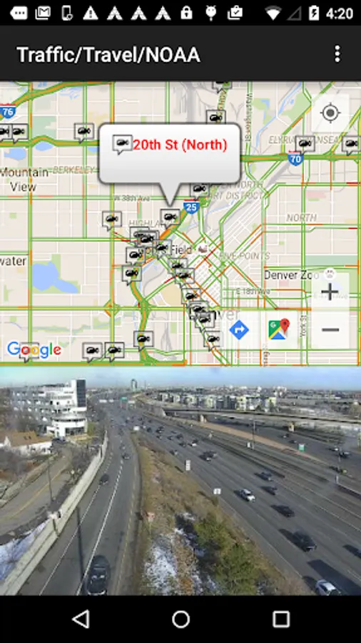 *** 12-04-2015: There are always multiple cameras at the same location on the Map. Click on a marker to see a camera image (north/south or east/west). Click on the same marker again. Then you will be able to see the other camera image. Refer the Screenshots to see the cameras (e.q 20th Ave (North) and 20th Ave (South)).