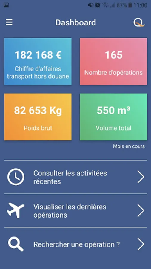 Our MYQS application welcomes you with its simple, efficient and comprehensive dashboard, available in French and English. This digital tool makes it possible to monitor and manage your international freight transport operations at any time.