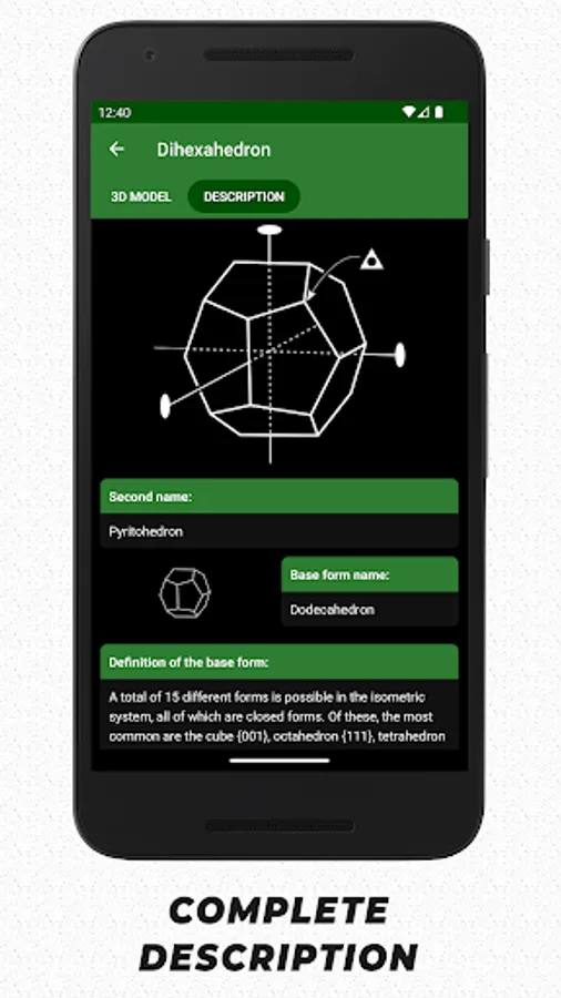 3D Crystal Forms Pro is a complete android application which is mainly addressed to Earth Science students / geologists / undergraduates as a guide in individual or supervised laboratory work. With 3D Crystal Forms app users can practice, improve, examine and explore three-dimensional crystal forms.
