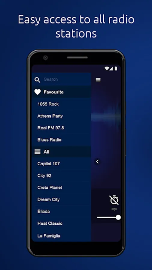 If you like to fall asleep while listening to some Greek radio station but you don't want to leave it playing whole night, you can easily set it to shut down automatically after the chosen time.