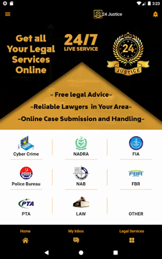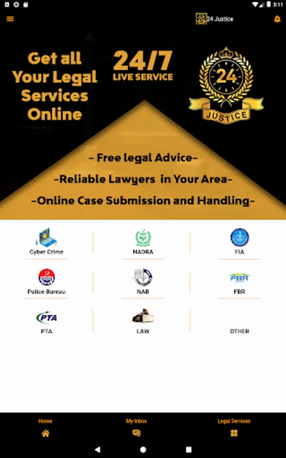 24Justice is an Innovative Solution 3rd Party App for users to find Legal Services from Reliable Lawyers who cover their area. You can ask Legal Questions from Verified Lawyers for Free, and obtain Legal Services Online. Not only do you get Legal Solutions on your finger tips, but you can also report Local Issues to the Relevant Government Authorities, as well as Manage and Handle all your Legal Queries and Cases, under one Dynamic App!
