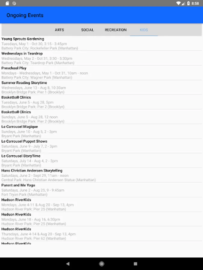 The NYC Free Summer Events app guides you to free arts, sports, social, and kids events for the entire summer. There is at least one event for every day from early June to late August and usually many! Take advantage of all that New York City has to offer!