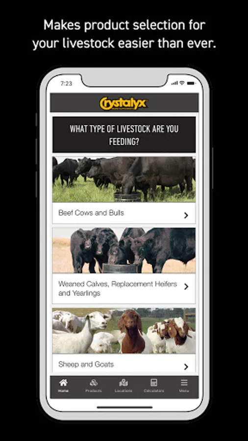 Need help deciding which CRYSTALYX product(s) you should be feeding? The CRYSTALYX Supplementation app makes product selection for your livestock easier than ever. Whether you are supplementing cows, heifers, calves, bulls, sheep, goats or horses, simply make your selections through a series of questions that will narrow down the products to those that will fit your needs.