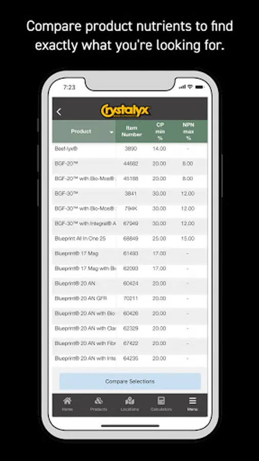 Are you a CRYSTALYX dealer? Use the CRYSTALYX Supplementation app as a tool to find the right supplement for your customers. Compare product nutrients, filter by product name, product number or nutrient levels and pinpoint CRYSTALYX products available with specific additives for your customer's convenience.