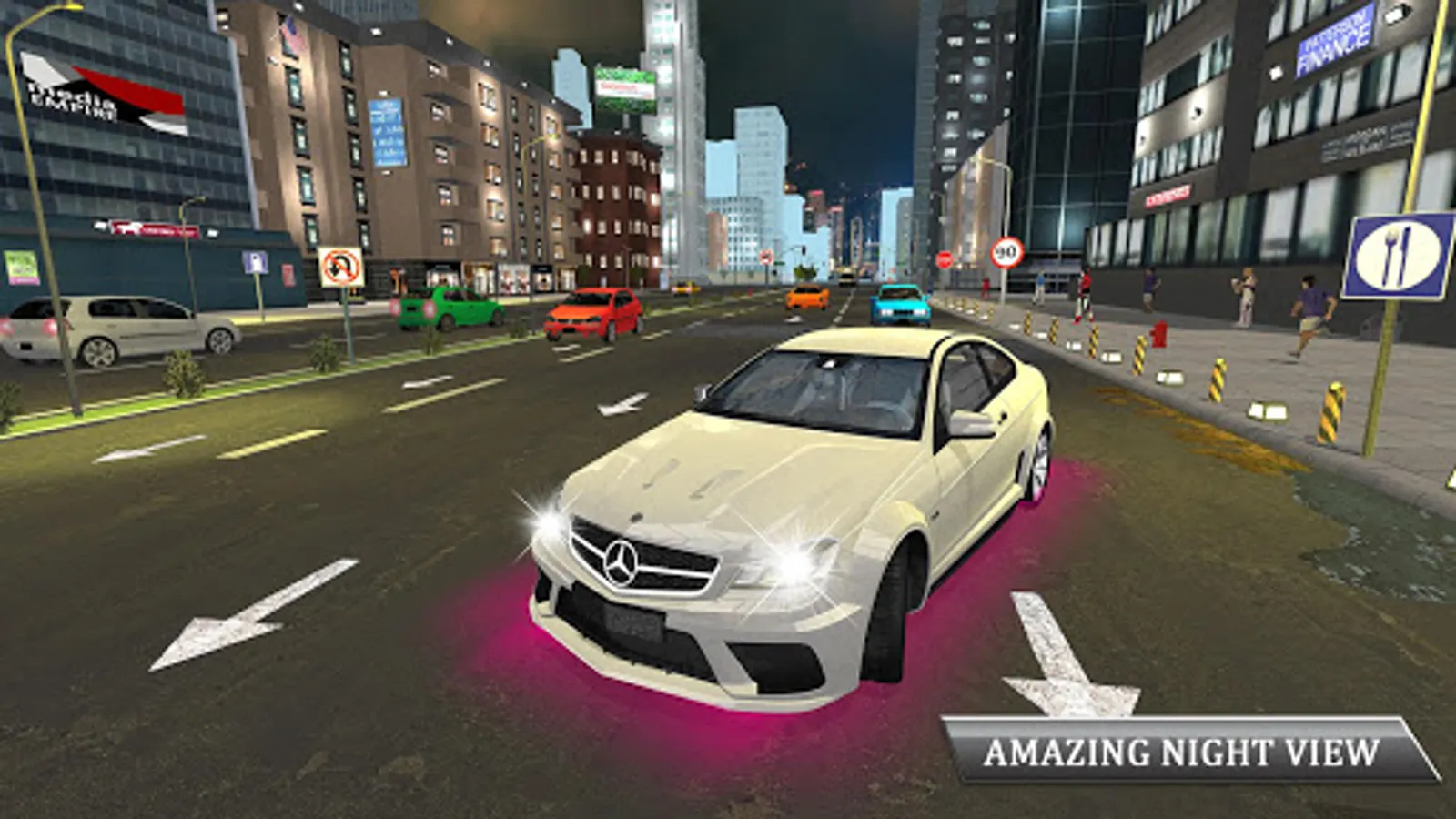 Enjoy the city drifting simulator with Mercedes - Benz C63 AMG super car to improve your racing and drifting skills, earn virtual money for tuning and customizing your ultimate super car with bursting tires and flaming engines.