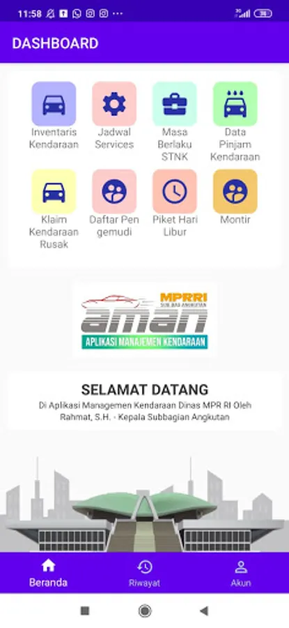 AMAN (Vehicle Management Application) is an application made to facilitate the process of borrowing vehicles at the MPR RI