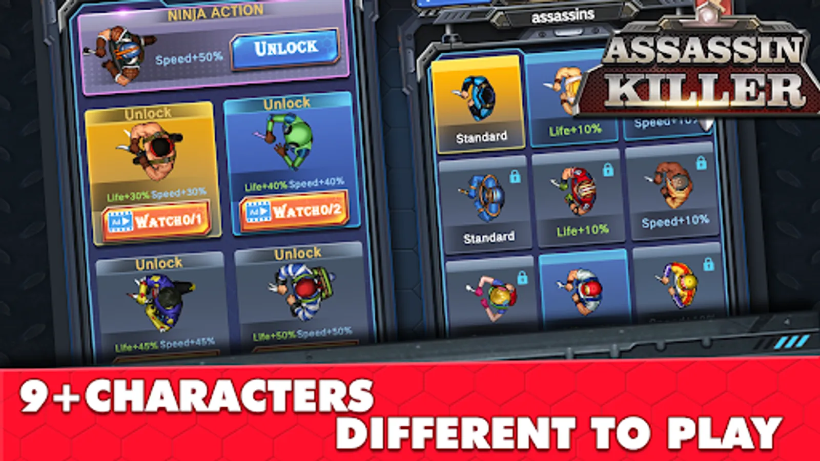 Every destroyed enemy will drop precious gems. Use gemstones to unlock faster assassins and hunters.
