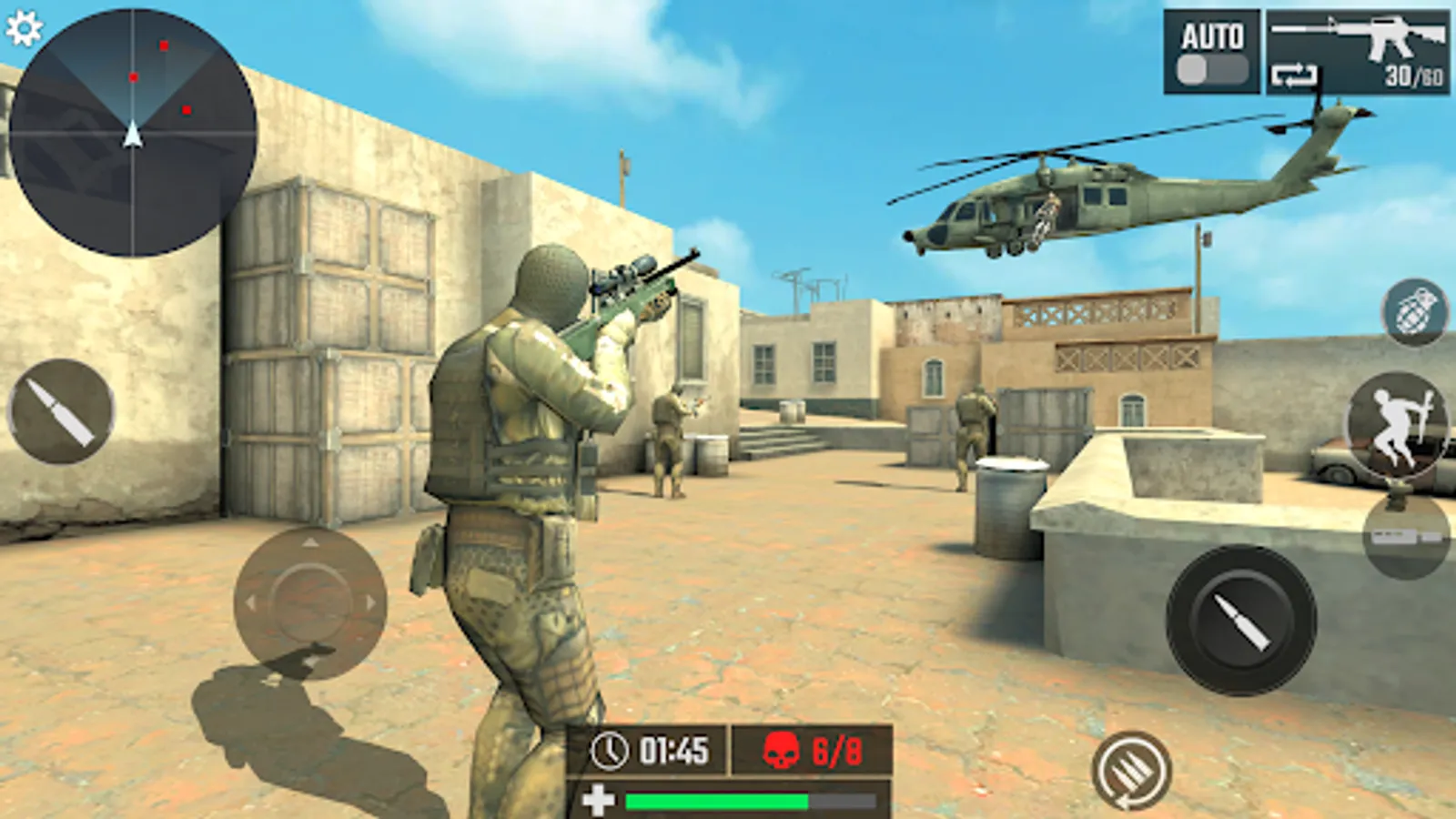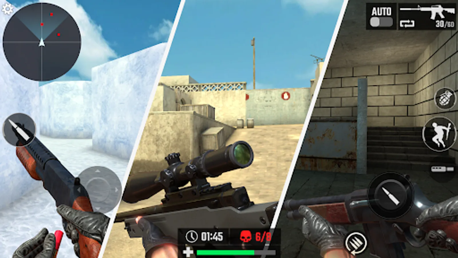 In Counter Strike : FPS Mission you received the call for duty to be the shooter who lead a squad of veterans through sieged cities, deserts and fields taken by guerrillas, and defeat all kind of enemies in the war with the biggest graphic, greatest arsenal and the best offline gameplay on mobile.