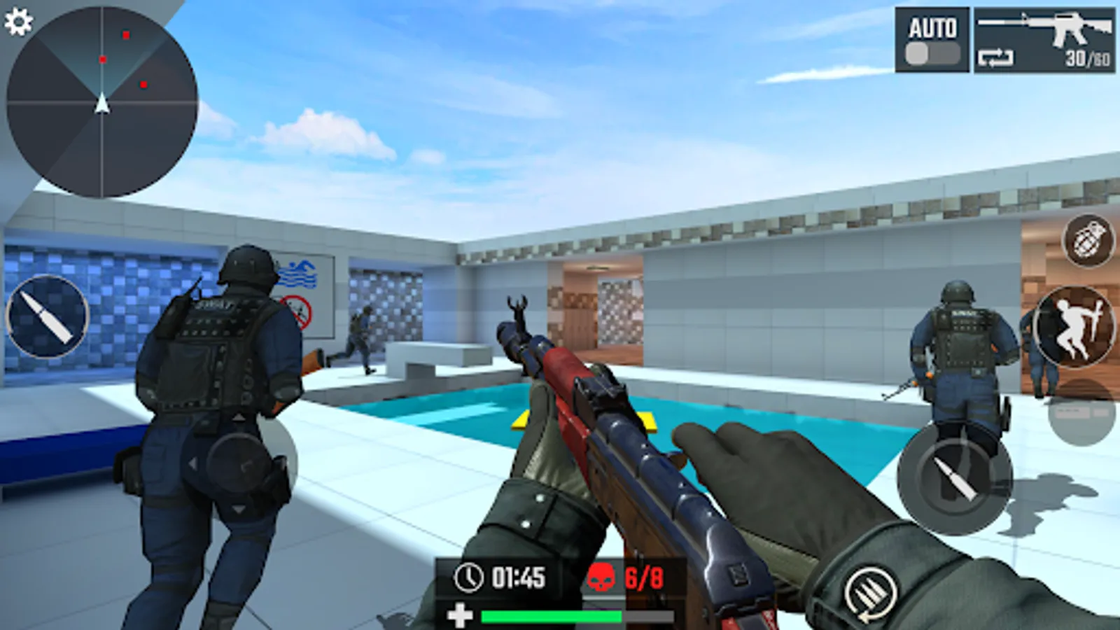 Enjoy realistic graphics and dynamic shooting mechanics. Elite heavy armies face off against ruthless gangsters... it's all in the palm of your hand! Play online with your friends and experience first-person PVP shootouts like never before! Everyone's favorite CS style has become a mobile game!