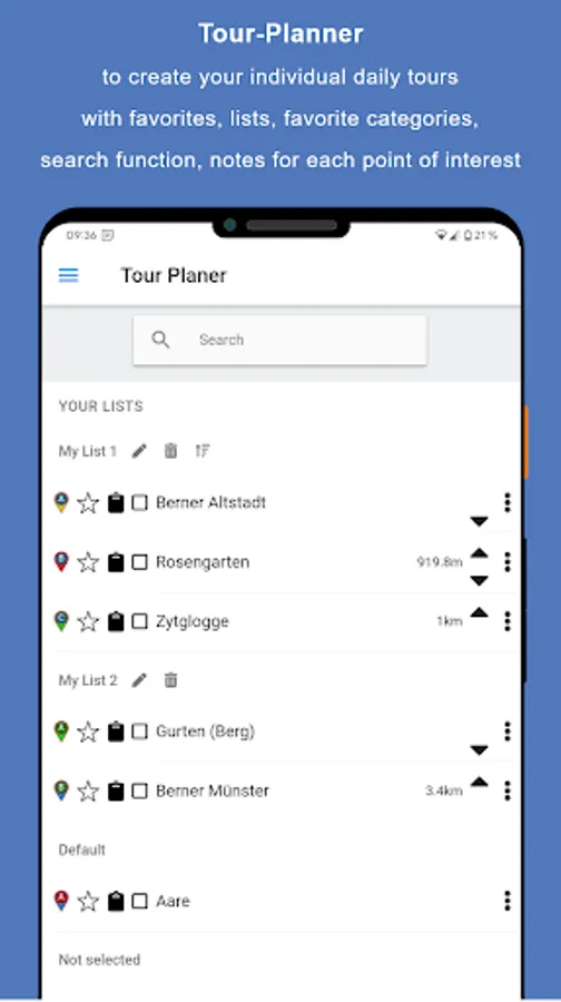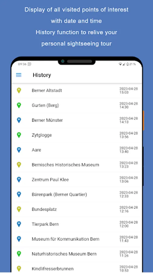Due to continuous updates, you will always receive the latest information and new points of interest. All visited points of interest can be viewed at any time via the integrated history.