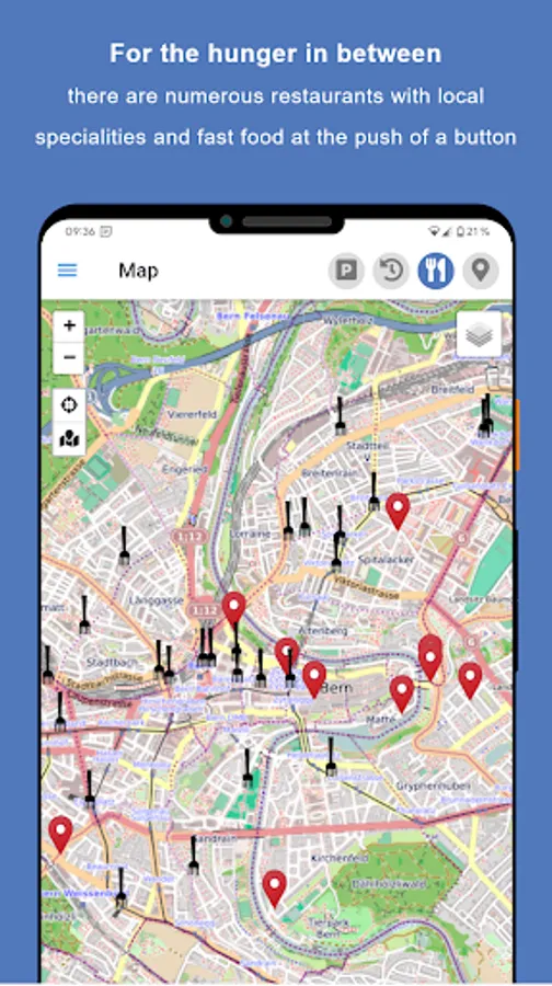 * Display many places of interest (40 - 200) on an offline-enabled map of Bern