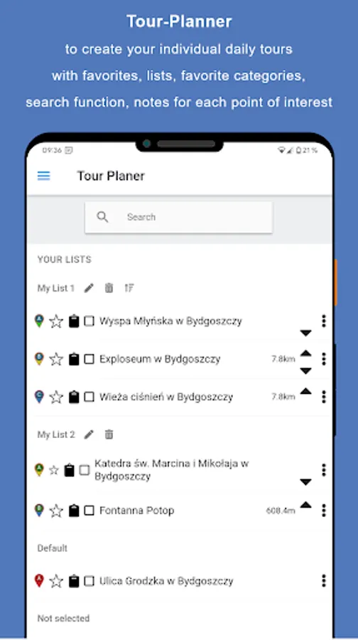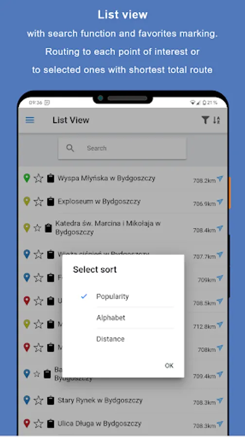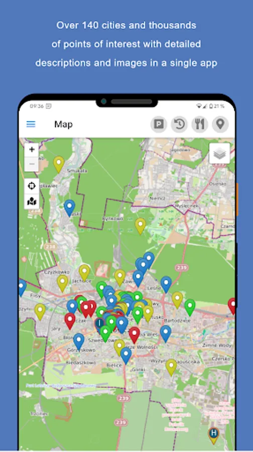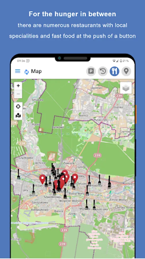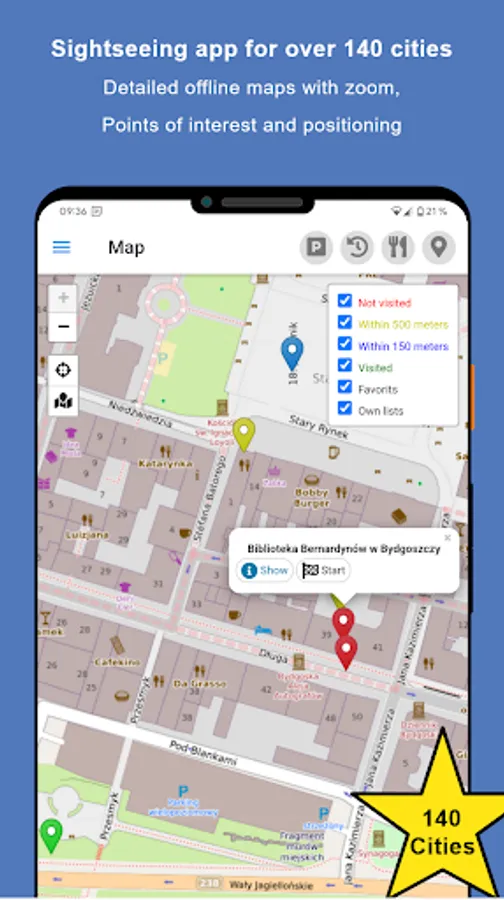* Display many places of interest (40 - 200) on an offline-enabled map of Bydgoszcz