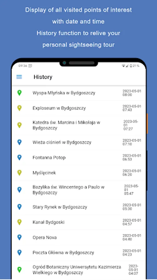 Due to continuous updates, you will always receive the latest information and new points of interest. All visited points of interest can be viewed at any time via the integrated history.