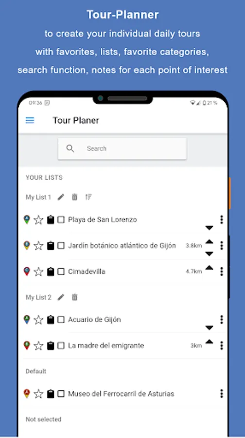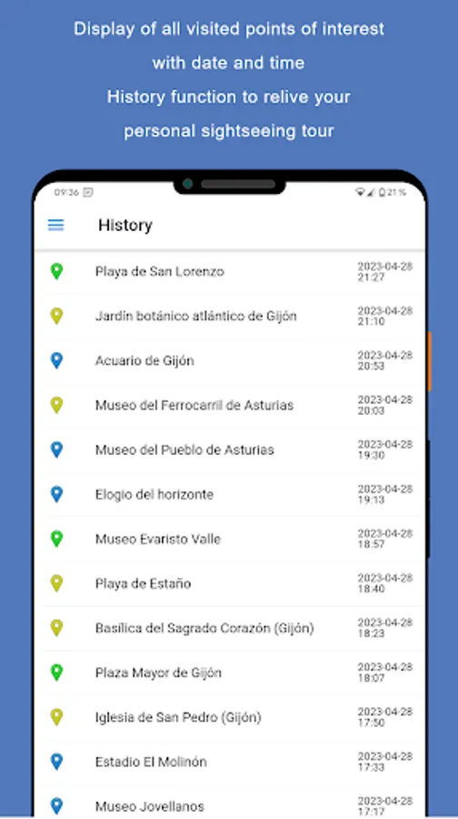 Due to continuous updates, you will always receive the latest information and new points of interest. All visited points of interest can be viewed at any time via the integrated history.