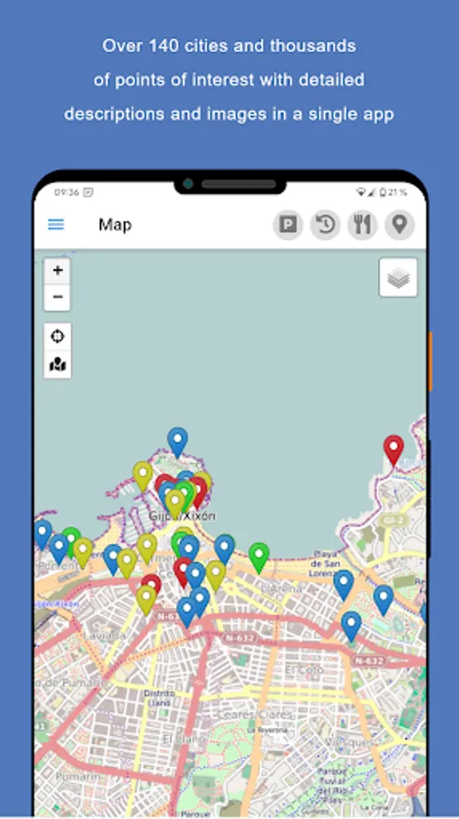 * Display many places of interest (40 - 200) on an offline-enabled map of Gijón