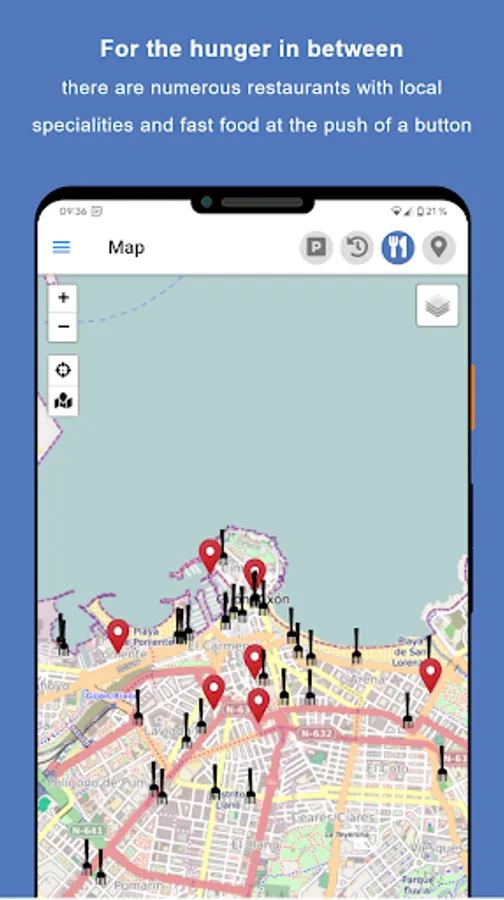 If the current sight has aroused your interest, you can call up a multitude of additional pictures and information with just one swipe. By displaying all sights and your current position on the integrated offline map you will never lose your orientation.
