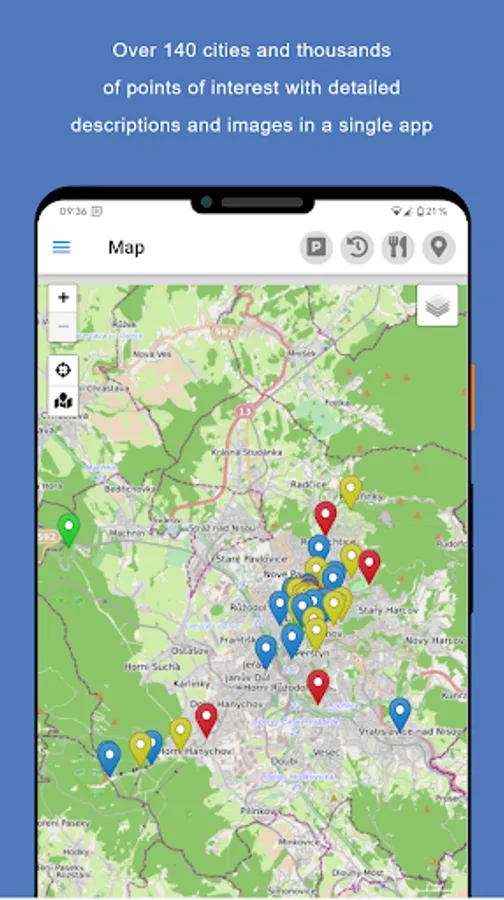 * Display many places of interest (40 - 200) on an offline-enabled map of Liberec