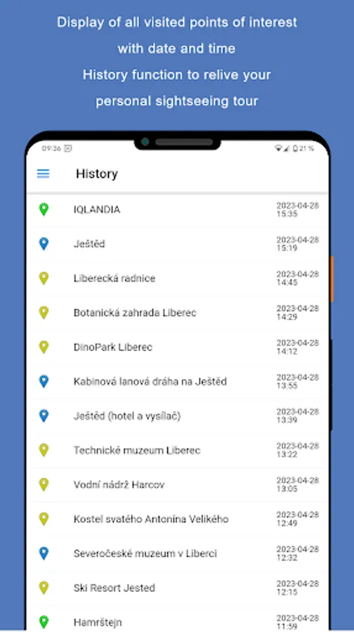 Due to continuous updates, you will always receive the latest information and new points of interest. All visited points of interest can be viewed at any time via the integrated history.