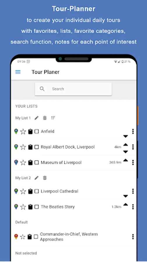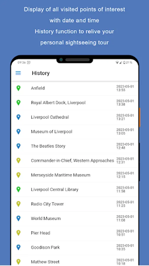 Due to continuous updates, you will always receive the latest information and new points of interest. All visited points of interest can be viewed at any time via the integrated history.