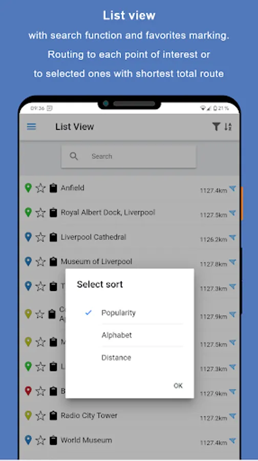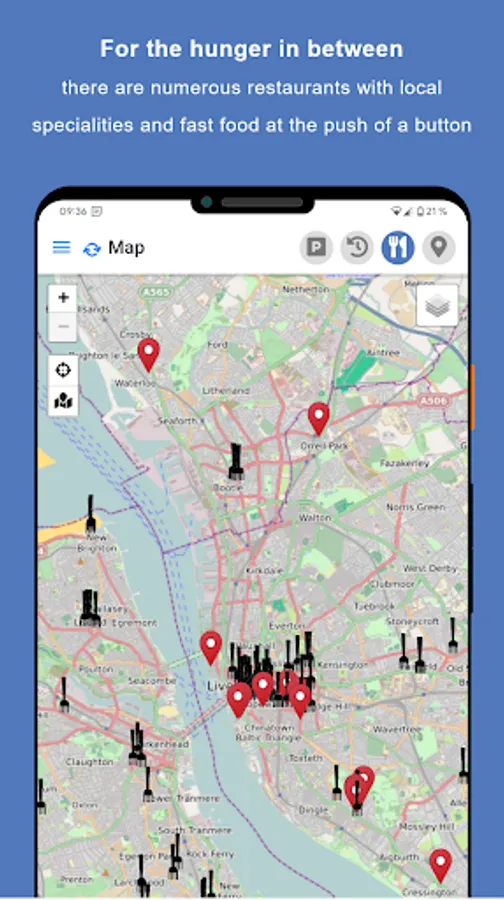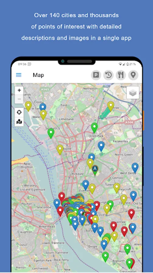 * Display many places of interest (40 - 200) on an offline-enabled map of Liverpool