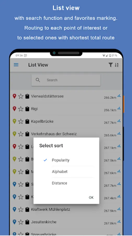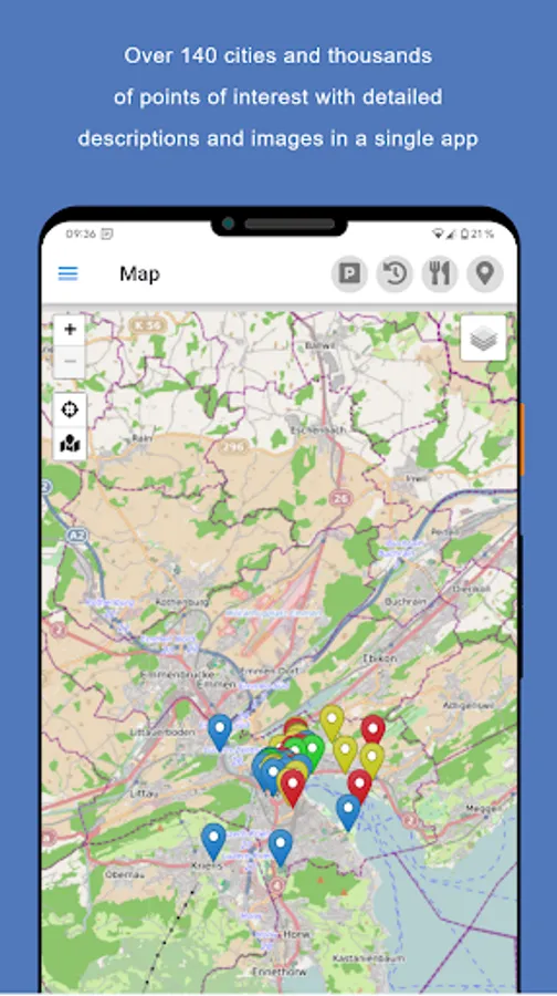 If the current sight has aroused your interest, you can call up a multitude of additional pictures and information with just one swipe. By displaying all sights and your current position on the integrated offline map you will never lose your orientation.