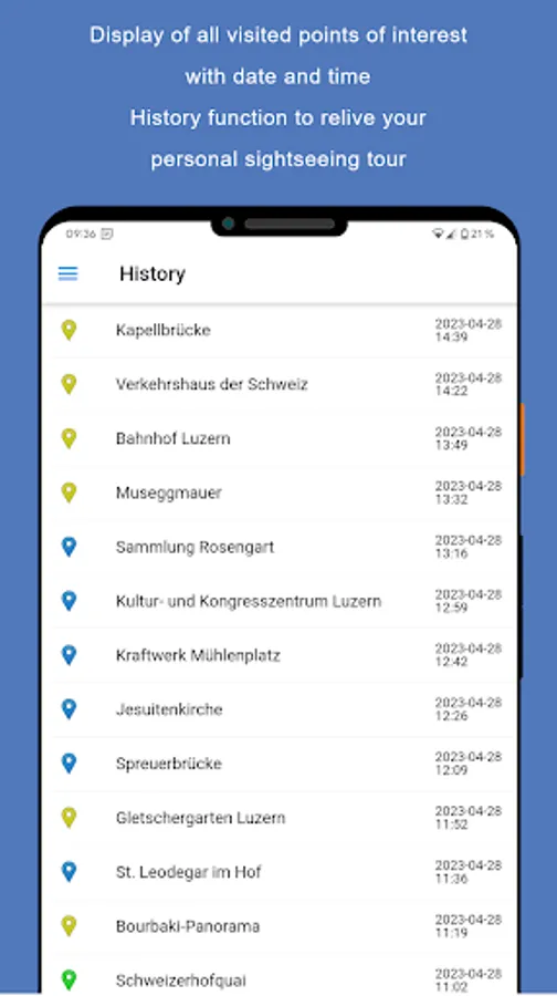 Due to continuous updates, you will always receive the latest information and new points of interest. All visited points of interest can be viewed at any time via the integrated history.