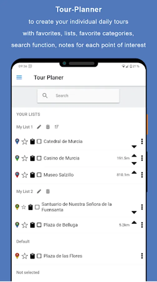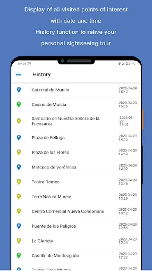 Due to continuous updates, you will always receive the latest information and new points of interest. All visited points of interest can be viewed at any time via the integrated history.