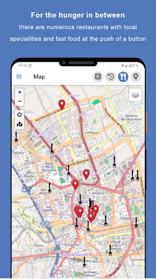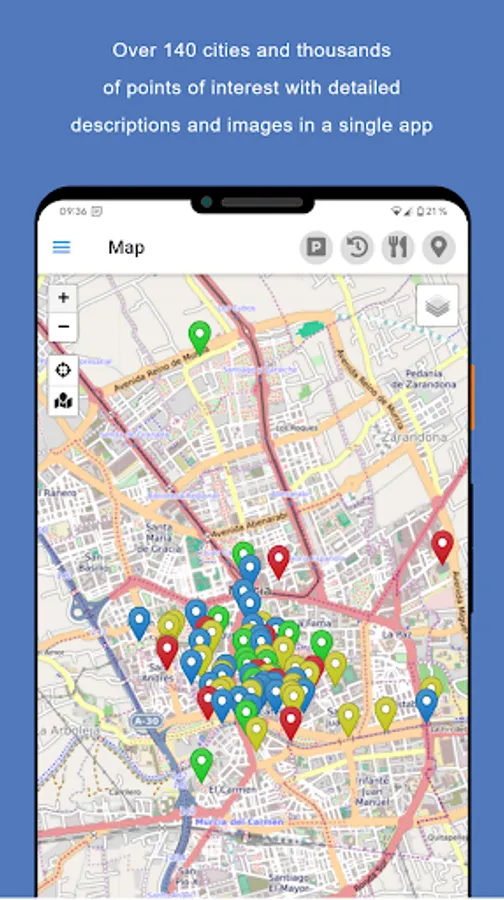 * Display many places of interest (40 - 200) on an offline-enabled map of Murcia
