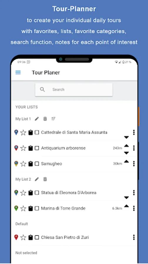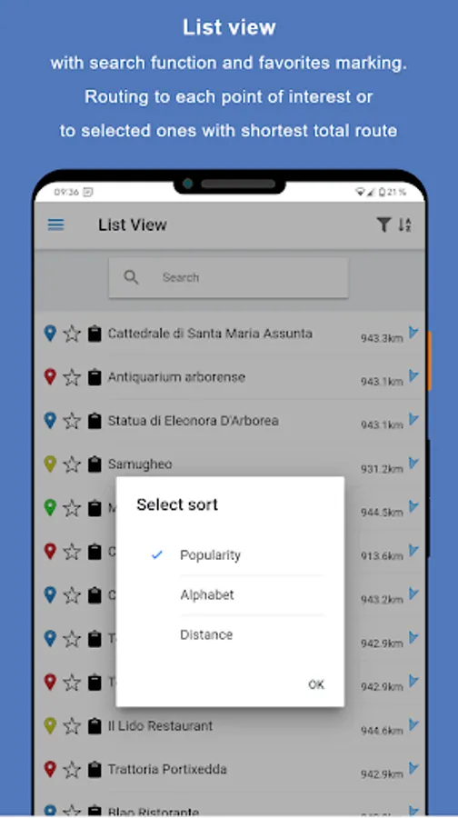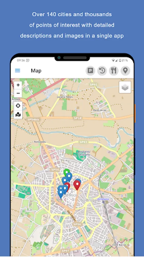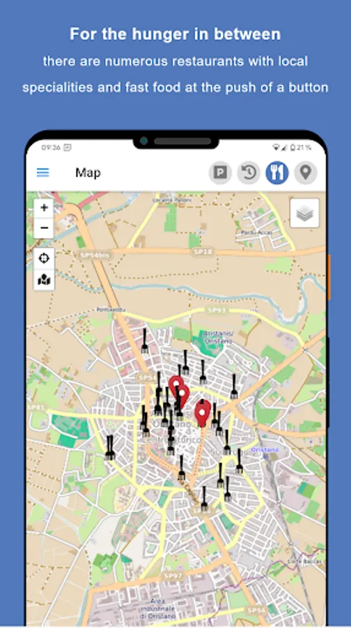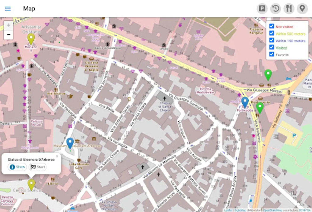 * Display many places of interest (40 - 200) on an offline-enabled map of Oristano