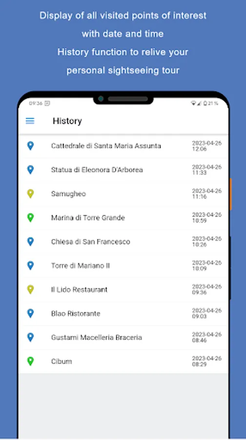 Due to continuous updates, you will always receive the latest information and new points of interest. All visited points of interest can be viewed at any time via the integrated history.