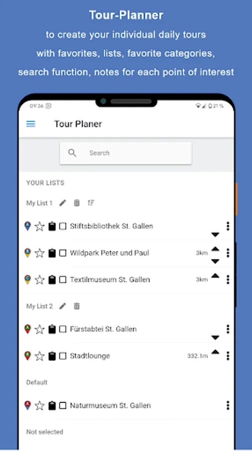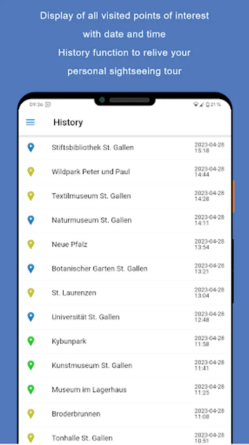 Due to continuous updates, you will always receive the latest information and new points of interest. All visited points of interest can be viewed at any time via the integrated history.