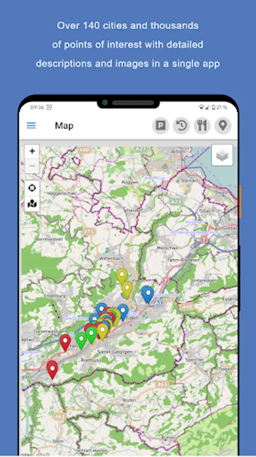 If the current sight has aroused your interest, you can call up a multitude of additional pictures and information with just one swipe. By displaying all sights and your current position on the integrated offline map you will never lose your orientation.