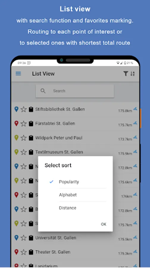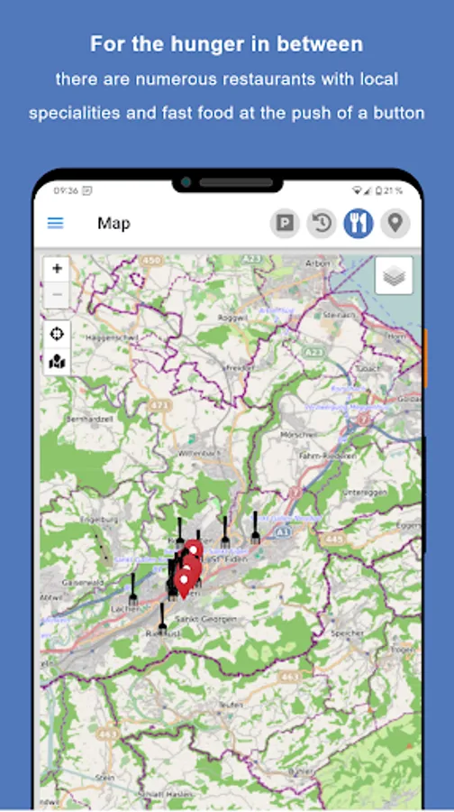 * Display many places of interest (40 - 200) on an offline-enabled map of St. Gallen