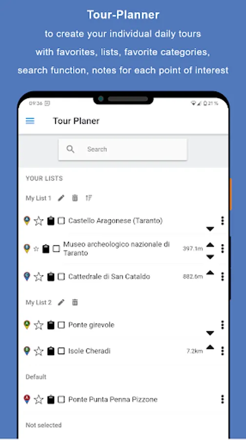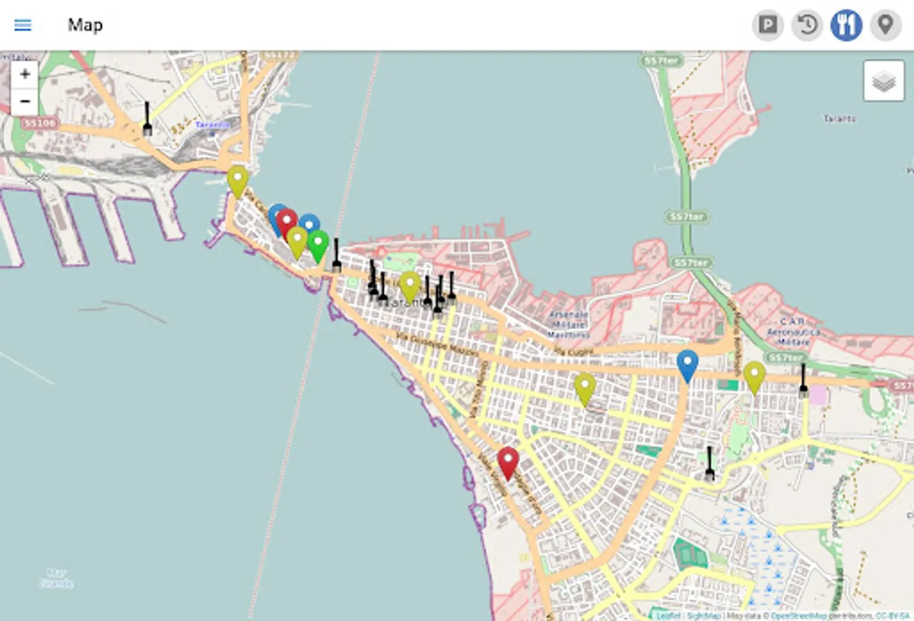 * Display many places of interest (40 - 200) on an offline-enabled map of Taranto