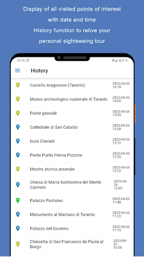 Due to continuous updates, you will always receive the latest information and new points of interest. All visited points of interest can be viewed at any time via the integrated history.