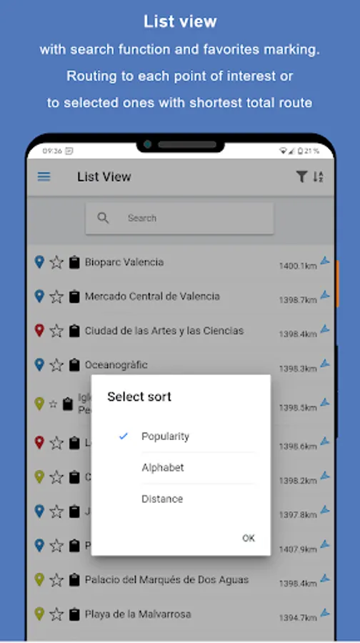 * Display many places of interest (40 - 200) on an offline-enabled map of Valencia