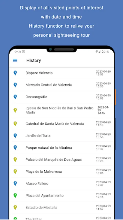 Due to continuous updates, you will always receive the latest information and new points of interest. All visited points of interest can be viewed at any time via the integrated history.