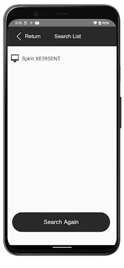 2. Open the Spirit Mirroring App on your device and select the model name displayed on the console.